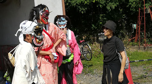 井原(いばら)はスタジオ・レイの生徒の一人の故郷、実家のある場所です。親戚の方がいつも美味しい野菜を送ってくださるので、そのお礼のワークショップです。それにちょうどその日がお祭りで、鬼が家々をまわり子供達にお説教をするというので、鬼に会いたいという思いもありました。